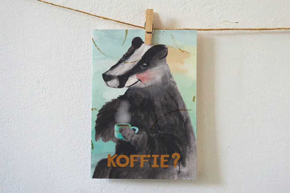 Kaart koffie? Een betoverende originele illustratie die verstuurd kan worden om iemand uit te nodigen voor een kopje koffie of voor de gezelligheid. Wie nodig jij uit voor het volgende kopje koffie?