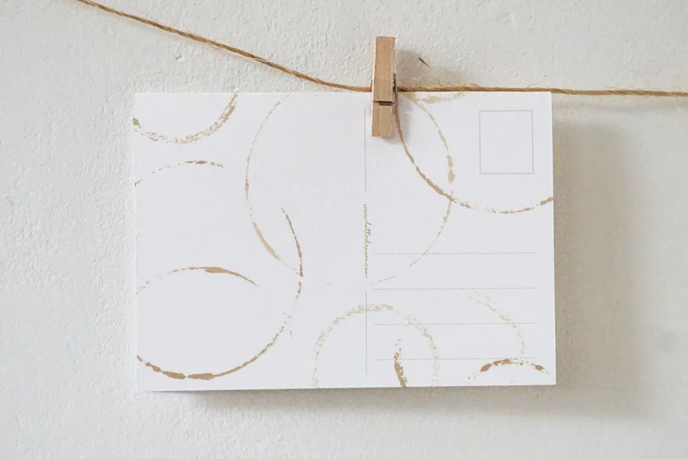 De illustratie van de kaarten van Lotte Drouen zijn door haar persoonlijk met de hand getekend en worden in kleine oplages gedrukt op mooi en dik structuurpapier. Het is zo net een klein schilderijtje. Ook de achterkant van de kaart heeft een mooi ontwerp met kleurrijke lijntjes voor de naam, adres, woonplaats en postzegel en natuurlijk ook nog een leuke illustratie.