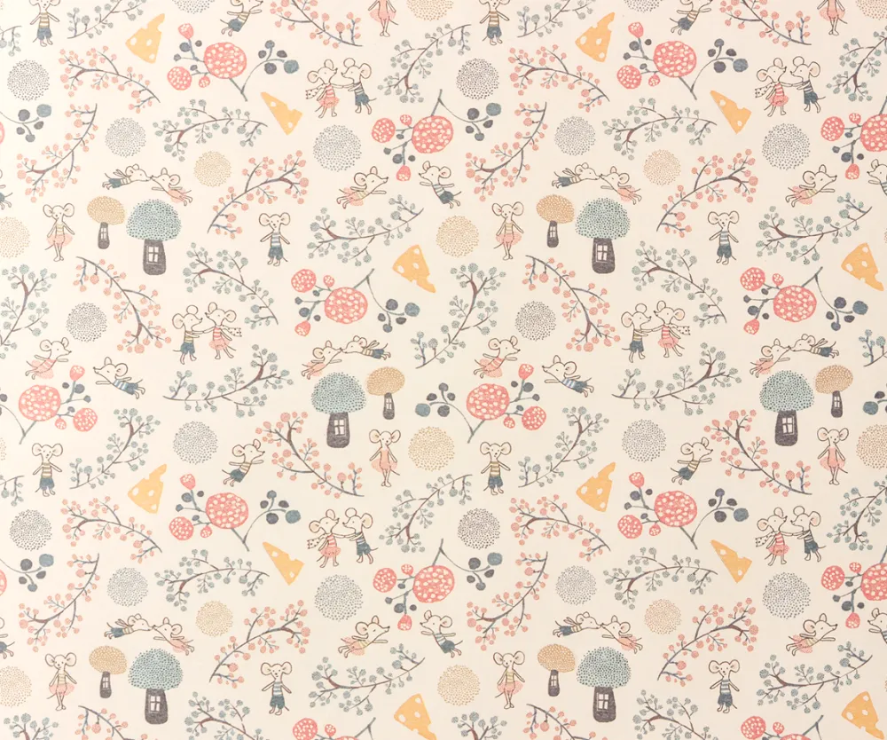 Dit cadeaupapier van Maileg wordt verkocht per 4 strekkende meter. Je kunt eenvoudig het aantal lengtes van 4 meter opgeven en wij zorgen dat het verzonden wordt. De breedte van het papier is 55cm.