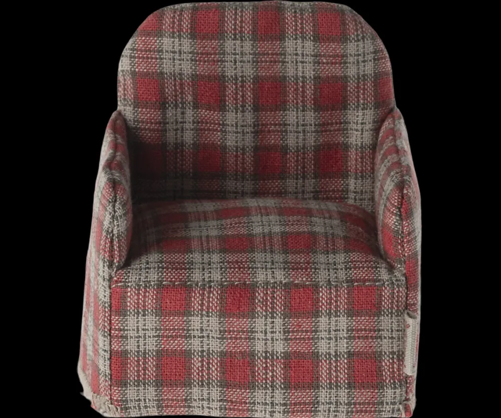 Maileg Poppenhuis Stoel Rood Geblokt 7.5cm