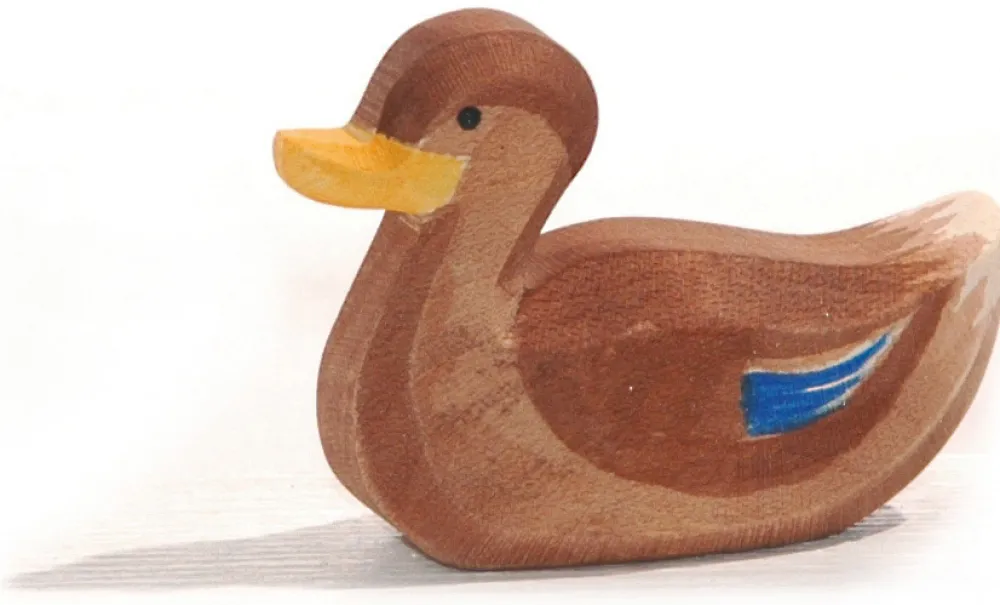 Deze eend van Ostheimer is lekker aan het zwemmen. Hoogte: 4 cm