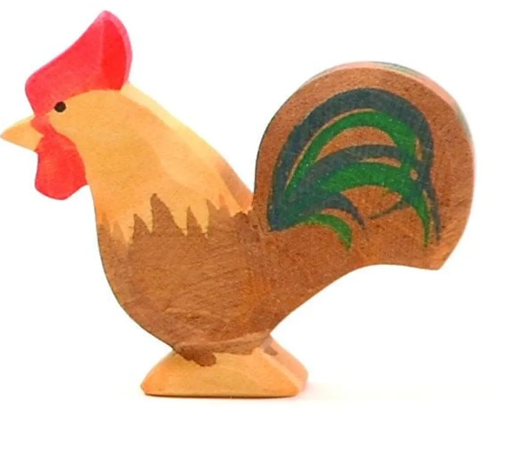 Deze bruin gekleurde haan van Ostheimer staat rechtop. Hoogte: 5.5cm