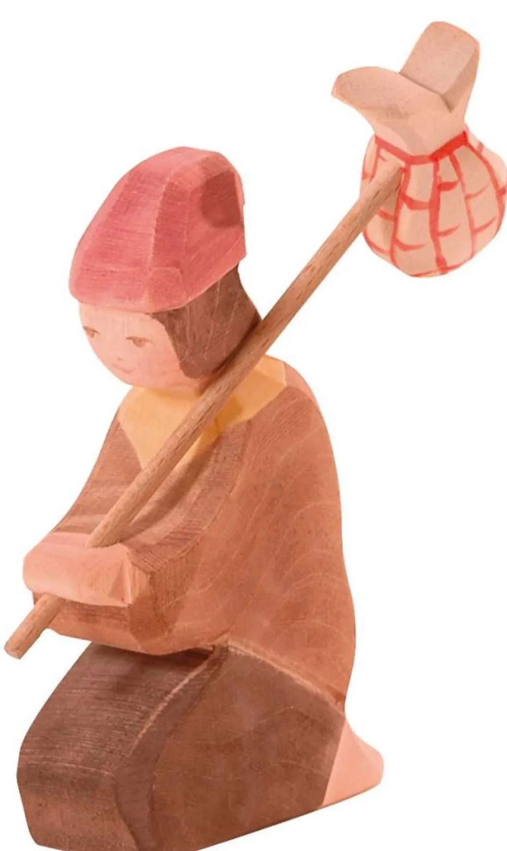 Deze met de hand uit hout gemaakte herder van Ostheimer past in de kerststal maar in combinatie met een paar schapen en de herdersjongen ontstaat ook een mooi tafereel. De herder heeft een staf in zijn handen waaraan een knapzak bevestigd is. Hoogte: 11.5