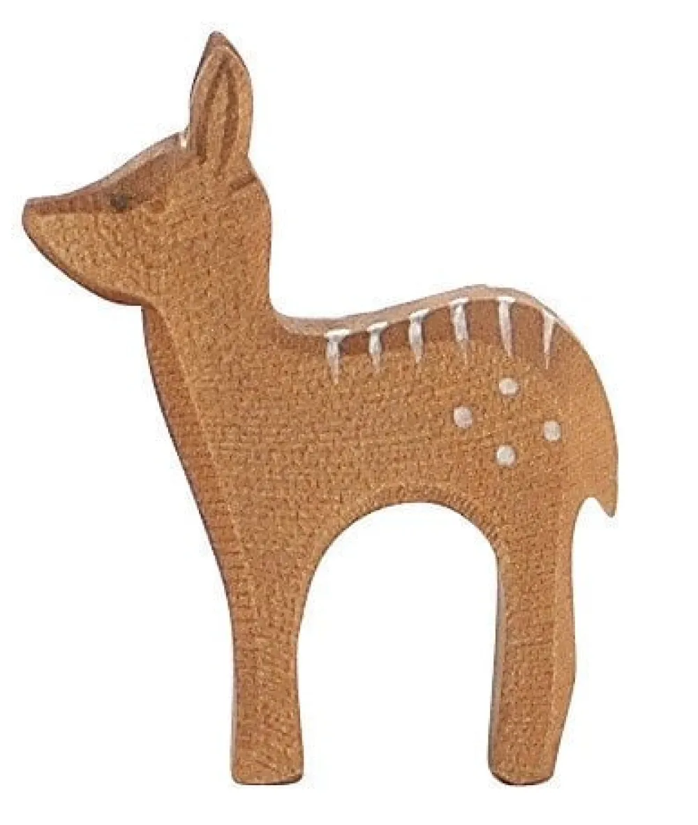 Dit hertenkalfje staat rechtop en komt uit de reeks bos- en velddieren van Ostheimer. Hoogte: 8 cm