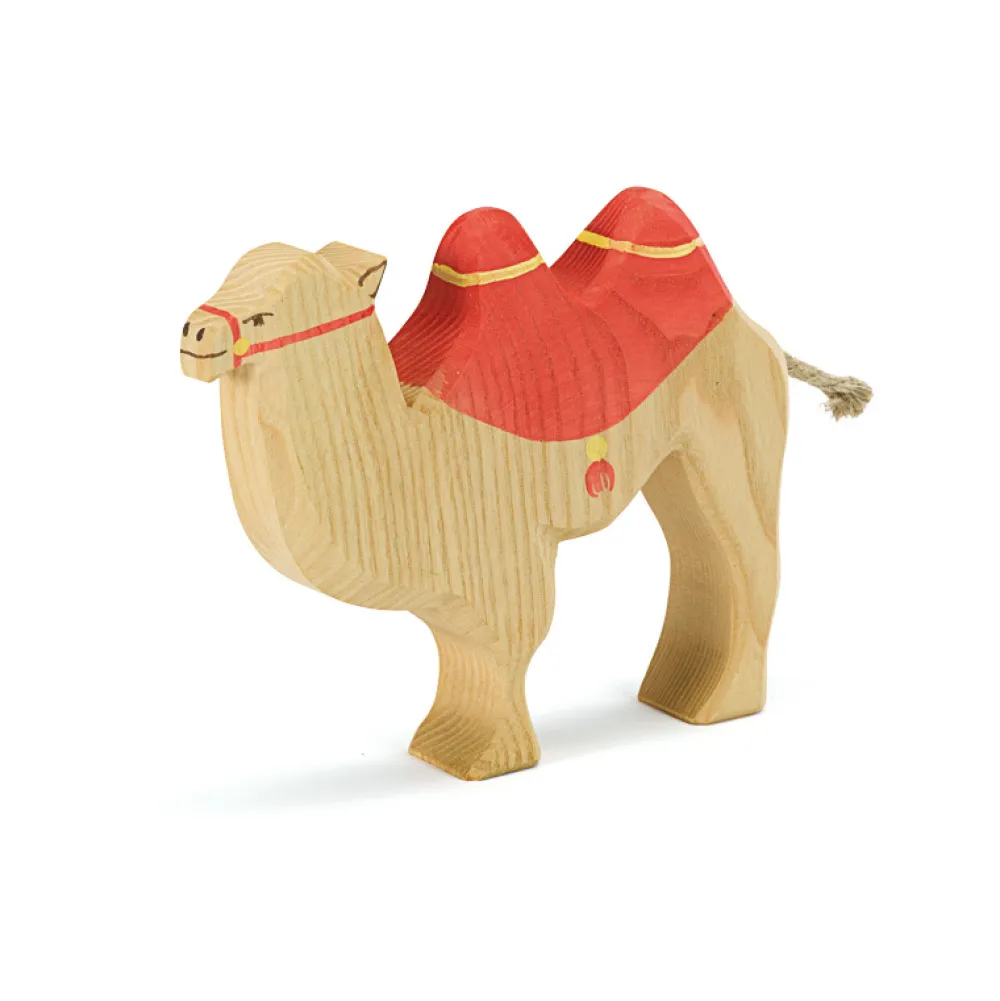 Deze kameel kijkt recht voor zich uit en is voorzien van een getekend zadel. Past bij de kerststalfiguren van Ostheimer. Hoogte:15cm