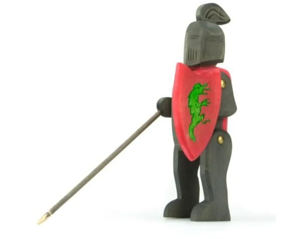 Uit de reeks ridders en kastelen van Ostheimer komt deze zwarte ridder. De ridder heeft in zijn ene hand een zwaard en in zijn andere hand het schild om zich te verdedigen. Hoogte: 18 cm.