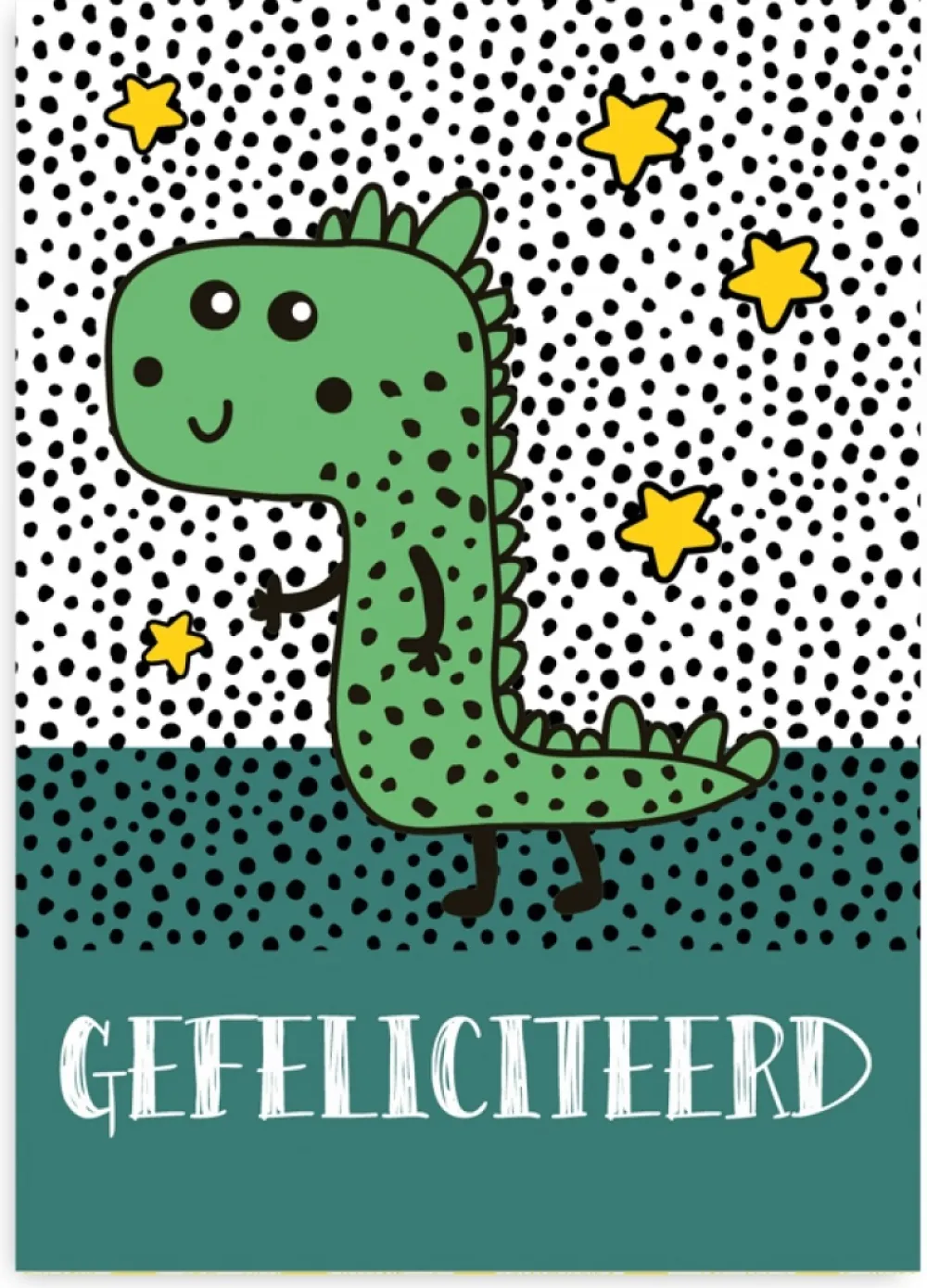 Specificaties voor: Wenskaart Gefeliciteerd (Dino)