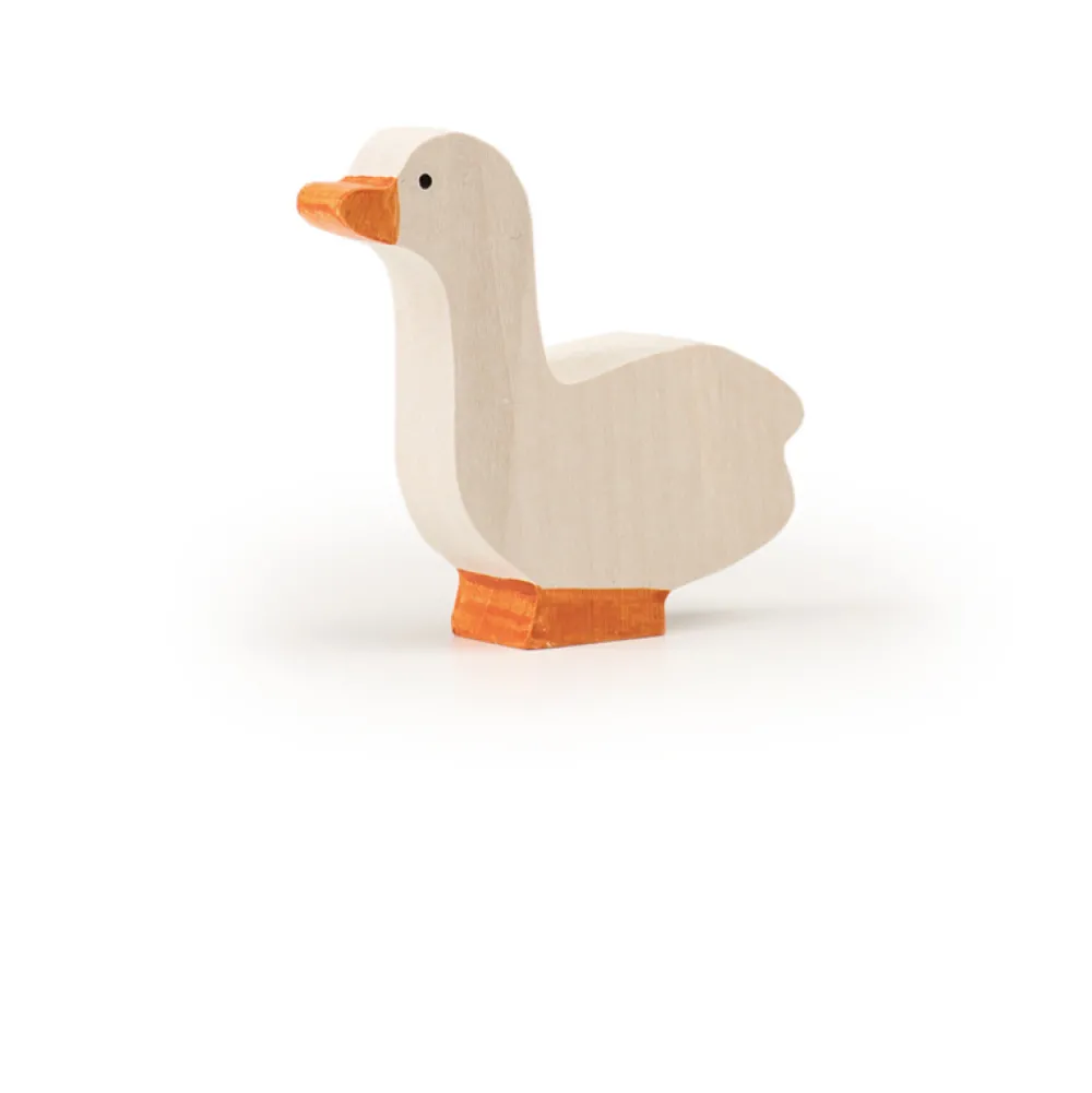 Deze gans van Trauffer staat rechtop en is met de hand gemaakt van lindehout in Zwitserland, de gebruikte verf is vrij van chemicaliën. De gans is robuust genoeg om mee te spelen. Hoogte: 4 cm.