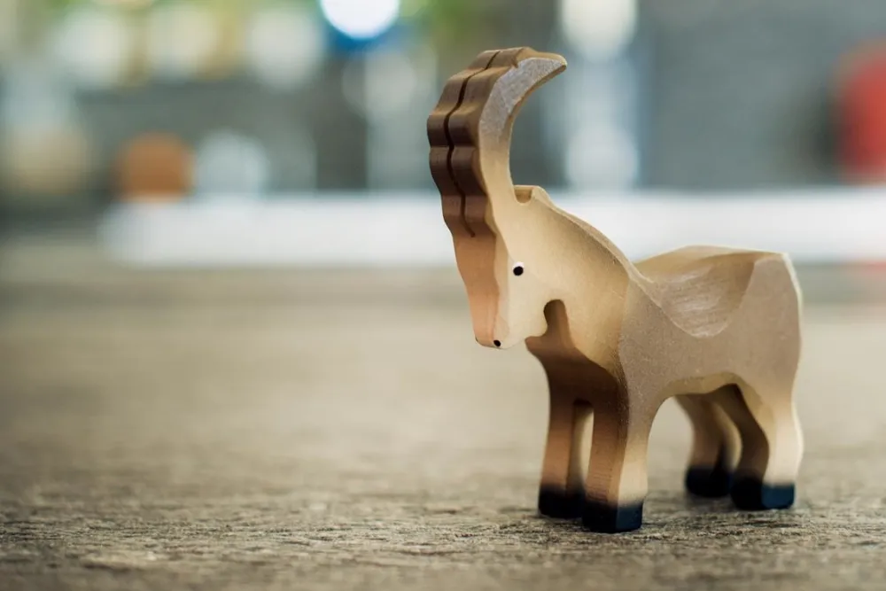 Deze steenbok van Trauffer is met de hand gemaakt van lindehout in Zwitserland, de gebruikte verf is vrij van chemicaliën. De steenbok is robuust genoeg om mee te spelen. Afmeting: 12x8x3.5 cm.