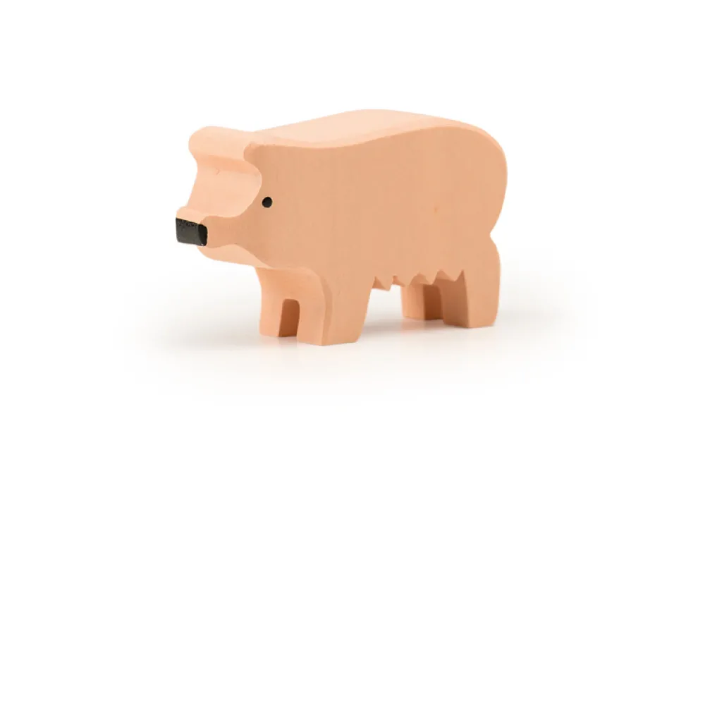 Dit roze varken van Trauffer staat rechtop en is met de hand gemaakt van lindehout in Zwitserland, de gebruikte verf is vrij van chemicaliën. Het varken is robuust genoeg om mee te spelen. Hoogte: 4 cm.
