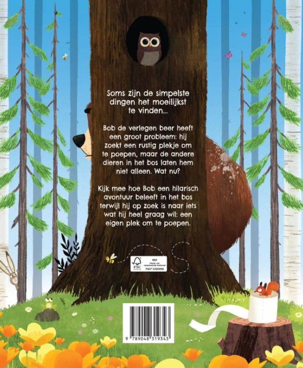 Soms zijn de simpelste dingen het moeilijkst te vinden… Bob de verlegen beer heeft een groot probleem: hij zoekt een rustig plekje om te poepen, maar de andere dieren in het bos laten hem niet alleen. Wat nu?