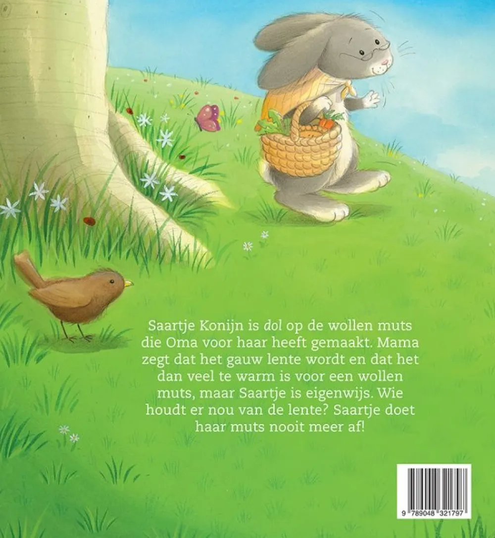 Saartje Konijn is dol op de wollen muts die Oma voor haar heeft gemaakt. Mama zegt dat het gauw lente wordt en dat het dan veel te warm is voor een wollen muts, maar Saartje is eigenwijs. Wie houdt er nou van de lente? Saartje doet haar muts nooit meer af