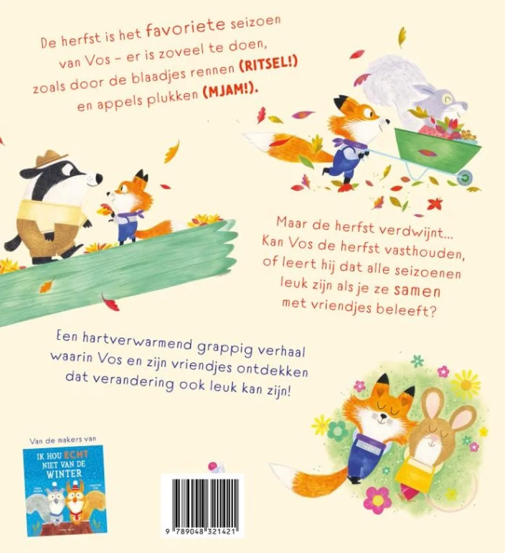 De herfst is het favoriete seizoen van Vos – er is zoveel te doen, zoals door de blaadjes rennen (RITSEL!) en appels plukken (MJAM!). Maar de herfst verdwijnt… Kan Vos de herfst vasthouden, of leert